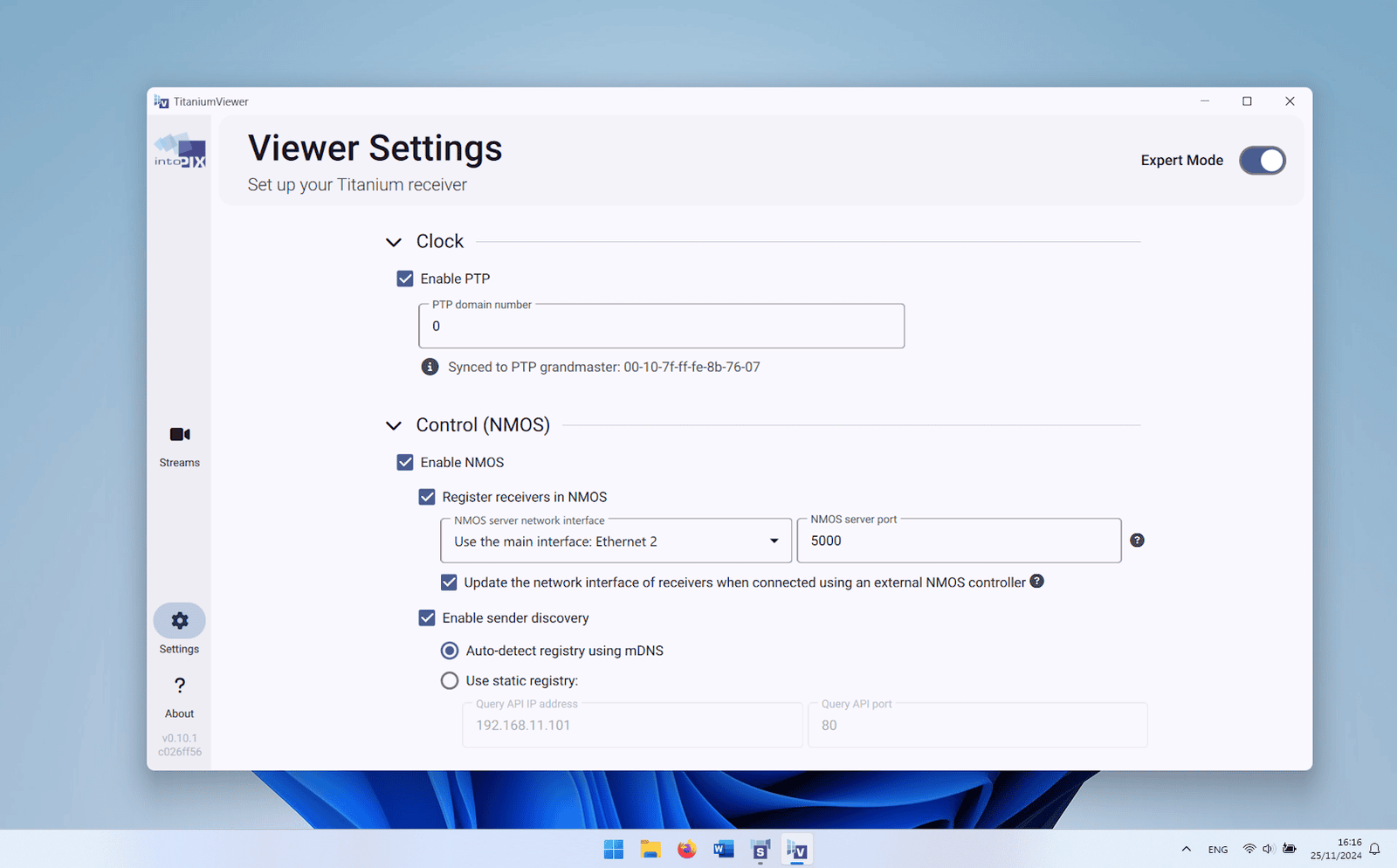 - Intuitive Setup and Control: Enjoy an easy setup and management experience via a user-friendly interface, featuring an embedded NMOS controller for seamless stream discovery and network connection directly from the application. SDP files & URLs are also supported for custom setups.