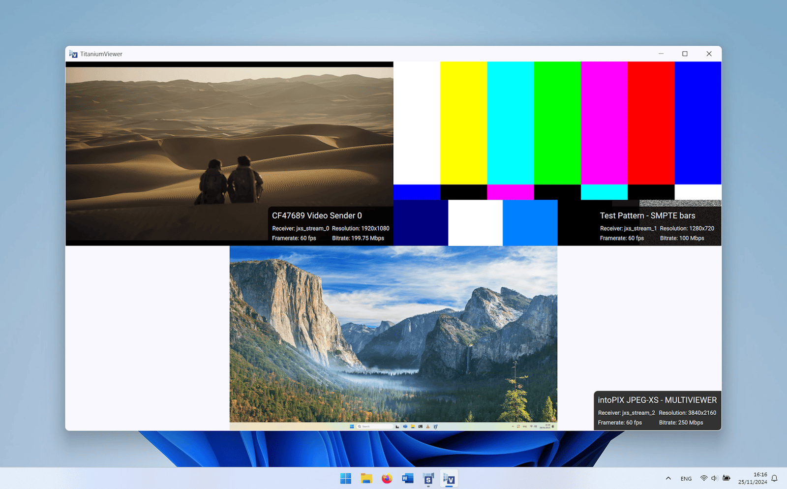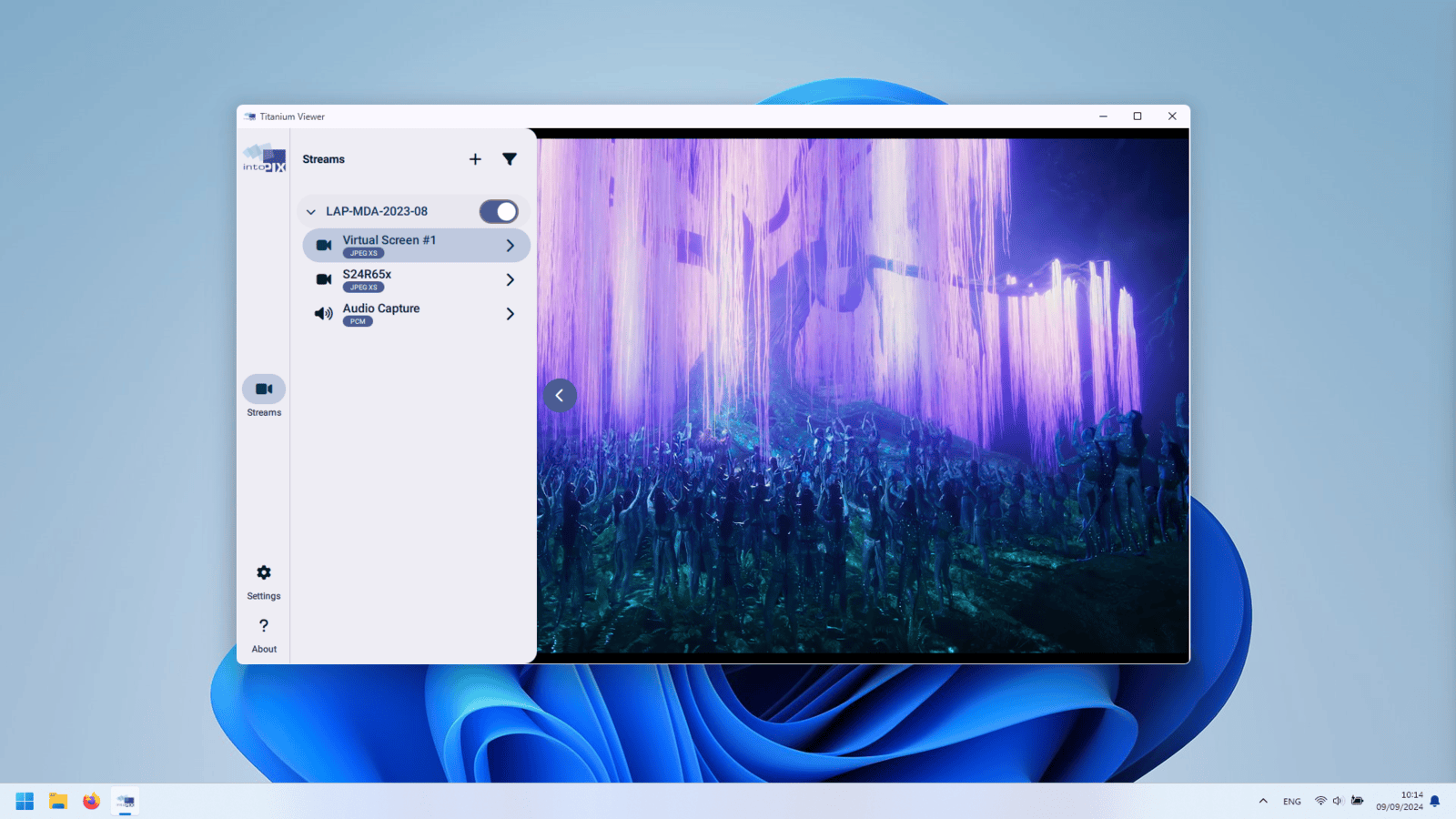 TitaniumViewer is designed to effortlessly connect SMPTE ST 2110 or IPMX networks into mini PCs, laptops or workstations, allowing you to display or monitor video streams with resolutions up to Ultra HD 4K. In studio or field environments, the app is ideal for critical video distribution, source monitoring and multi-viewer applications.