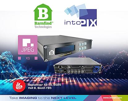 intoPIX announces that Barnfind Technologies has integrated the intoPIX JPEG XS codec into its BarnPalette Flow-XS product line. This integration enables pristine-quality video transport and conversion with ultra-low latency, bringing new efficiency and reliability to broadcast infrastructures.